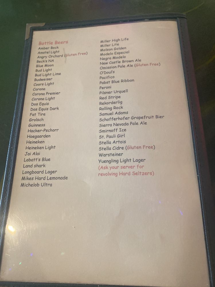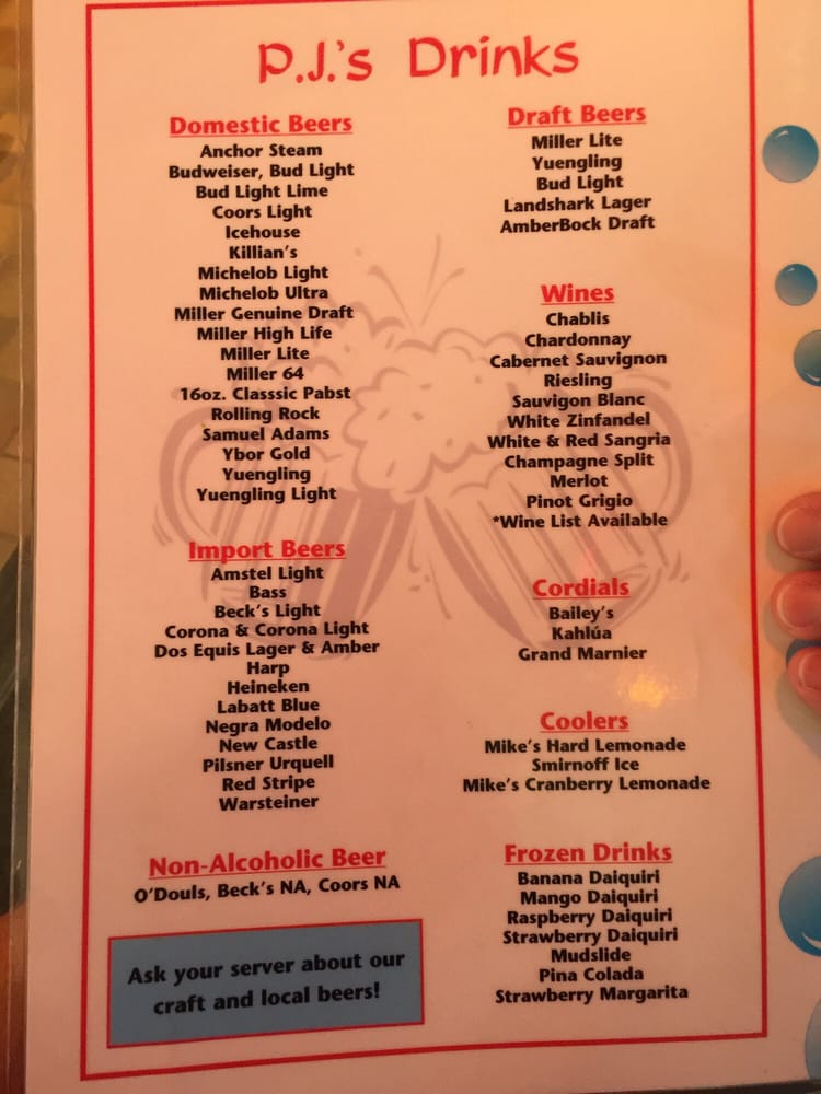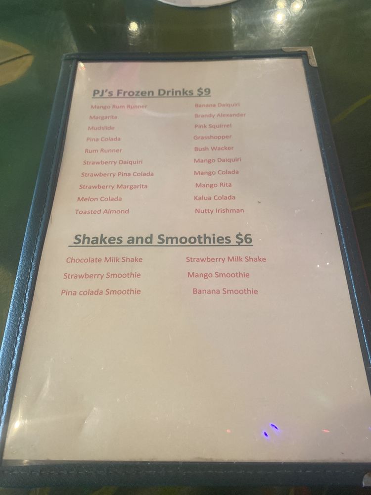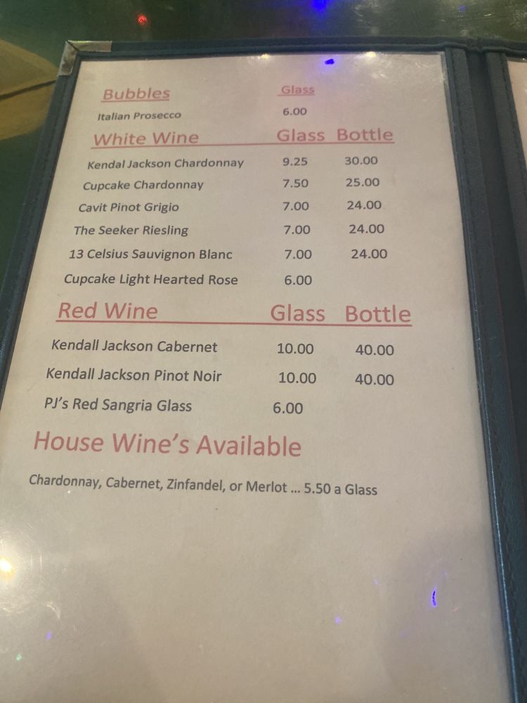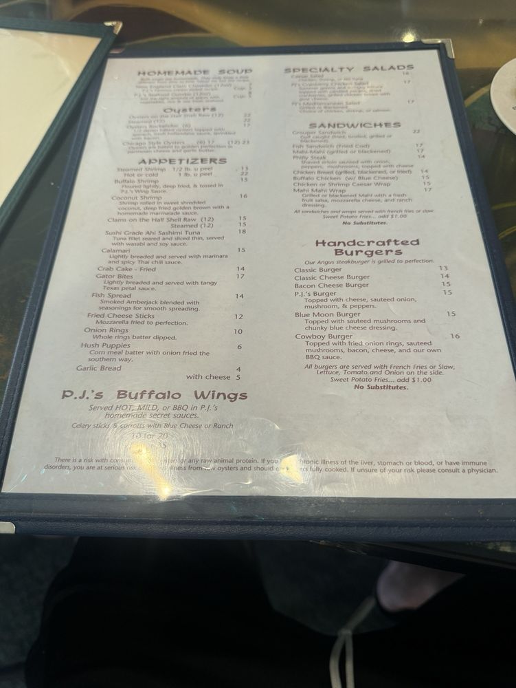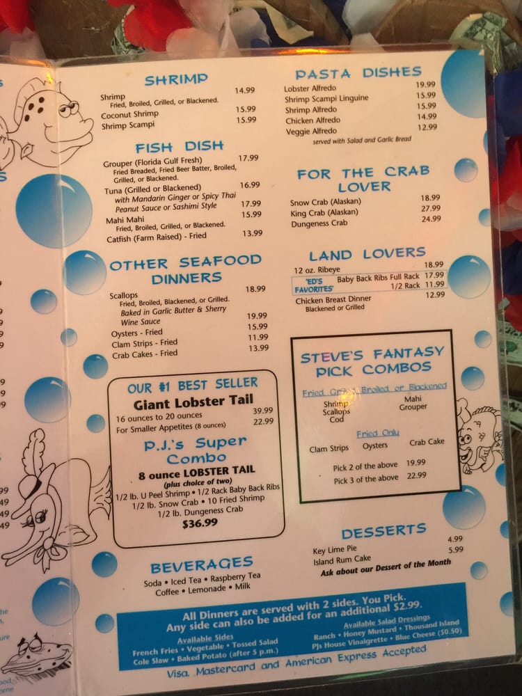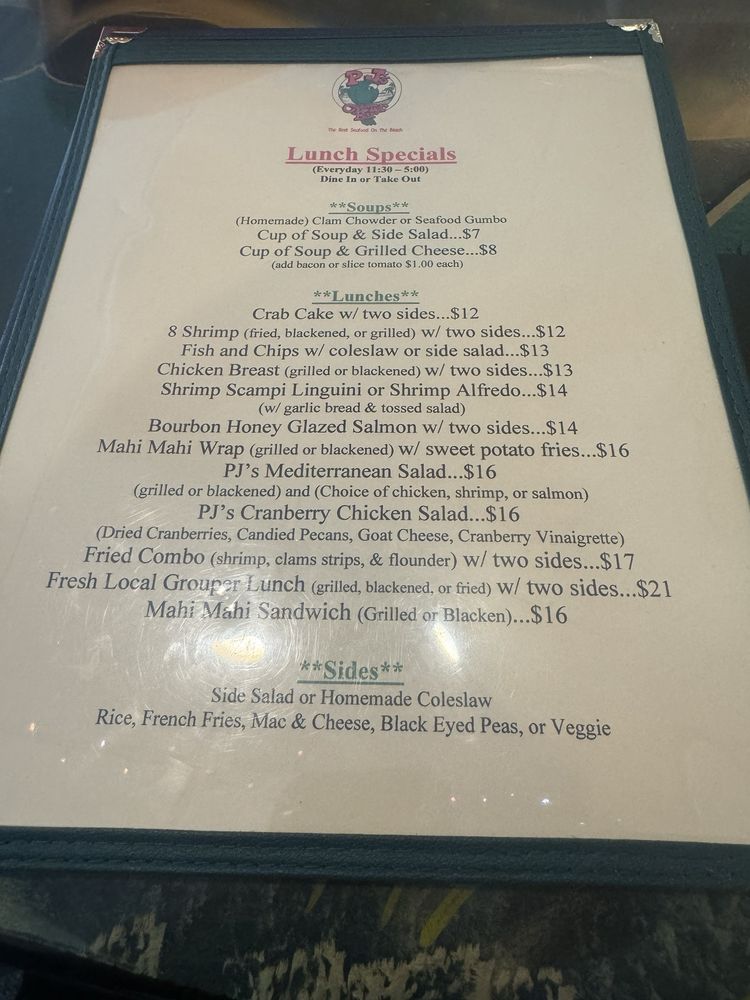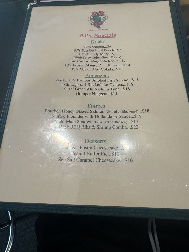 PJ's Oyster Bar Menu